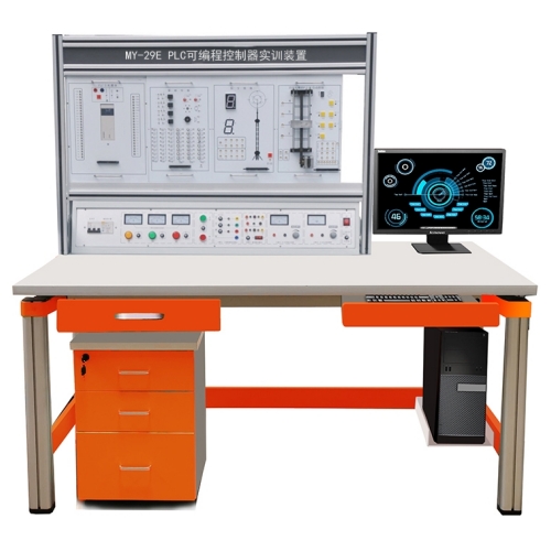 从系统构成来看,一套完整的PLC可编程实验系统涵盖了PLC可编程控制器实验台、实验演示装置、操作桌、编程应用软件、仿真教学软件、数字孪生仿真系统等多个核心部件。其中,铝型材框架搭建的实验台与控制箱,不仅结构稳固,更便于学生直观观察设备内部连接与控制原理;而挂箱式的实验演示装置设计,更是为实验项目扩展和用户二次开发提供了便利,学生可以根据学习进度和兴趣,自主组合不同的实验模块,实现从基础操作到创新设计的过渡。操作桌的设计同样兼顾实用性与安全性,一桌两座的布局满足小组协作需求,25mmE1 级三聚氰胺饰面板打造的桌面承重能力不少于 300kg,确保设备放置稳定,抽屉、电脑键盘位以及储存柜的配置,既方便工具与元件的收纳,也为结合电脑进行编程操作提供了良好条件,尤其是正面装配的保护挡板,通过高强度铝合金与 PVC 外套的组合,有效防止实验用品滑落,兼具防尘、耐腐蚀特性,为实训安全保驾护航。